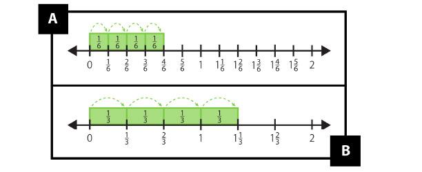 - Make a third number line with fractions. Explain how your picture is the same as pictures A and B, and how it is different. You can draw your own or use the Number Line app.