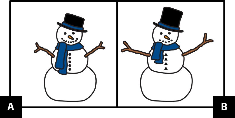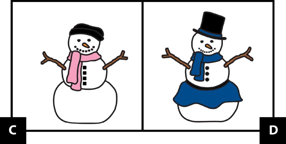 Make a picture of a snow person. Explain how your picture is the same as pictures A and B, and how it is different.