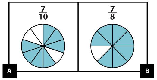 - Make a third picture that shows a whole divided into parts. Draw your own, or use the MLC Fractions app. Explain how your picture is the same as A and B, and how it is different.